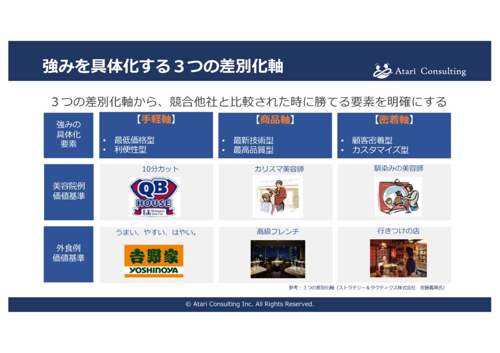 そこで重要になるのが、今回お伝えする 3つの差別化軸 です。