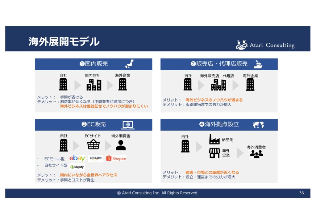 実は、海外展開には大きく分けて4つのモデルがあります。