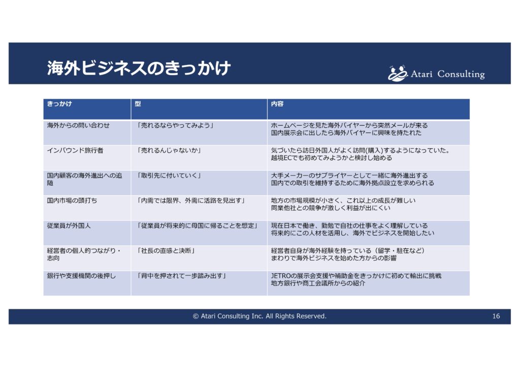 実際には多くの企業が「ちょっとしたきっかけ」から海外ビジネスをスタートしています。
