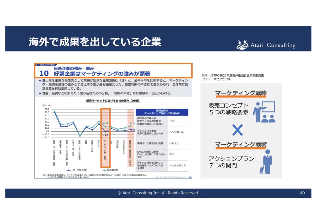 つまり、海外で成果を出している企業ほど、「販売の仕組みづくり」