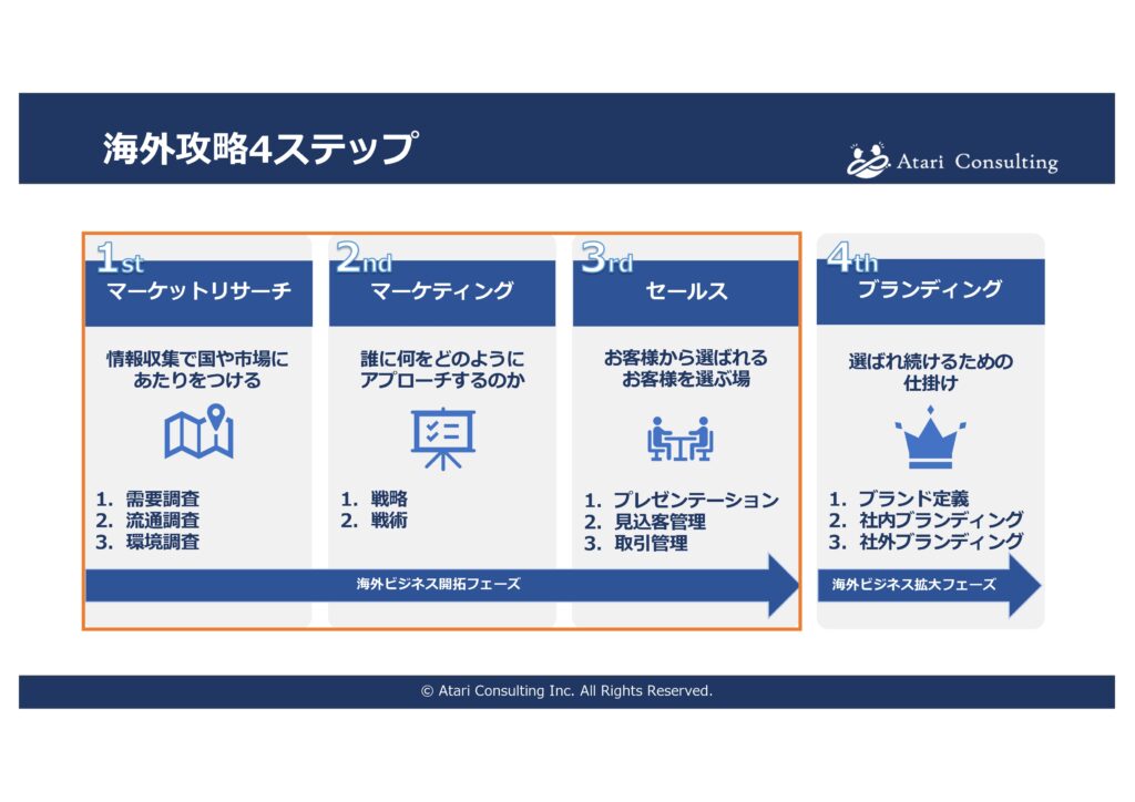 この流れをしっかり踏むことが、海外展開を成功に導くカギとなります。